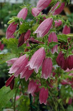 Колокольчик Cherry Bells (Черри Белз) высотой около 30-50 см. Стебли, листья и даже цветы с опушением. Цветы поникающие бокаловидные, крупные, длиной около 7 см, розового цвета.Цветы собраны в метельчатое соцветие. Цветет с июня по август.