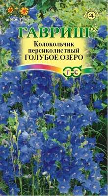 Колокольчик Голубое озеро (персиколистный). Многолетнее прямостоячее, слабоветвистое растение, высотой до 100 см. Прикорневые листья продолговато-клиновидные, стеблевые — линейно-ланцетные. Листья лоснящиеся, с зубчатым краем. Цветки ширококолокольчатые, синие, до 4 см в диаметре, собраны в рыхлое кистевидное соцветие. Цветет в июне-июле 30-35 дней. Неприхотлив, хорошо развивается на солнечных или полутенистых на дренированных, с достаточным питанием нейтральных или слабощелочных почвах. Семена высевают прямо в грунт весной в мае или осенью во второй половине октября, или в ящики на рассаду в марте-апреле. Сеют поверхностно или очень мелко, засыпая их тонким слоем песка. Всходы прореживают, после появления третьего листа пикируют в шахматном порядке на расстоянии 5-7 см друг от друга. В июне сеянцы пикируют на грядки, где они растут до следующей весны, затем их высаживают на постоянное место в цветник через 40-50 см. Зацветает на второй год. Удаление увядших цветков и засохших цветоносов продлевает срок цветения. В конце сентября — начале октября все стебли срезают под корень. Используется в групповых посадках, миксбордерах, на срезку.