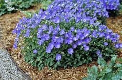 Колокольчик карпатский Rapido Blue (Рапидо Блу). Очаровательное невысокое растение с тонкими изящными стеблями, всего 20 см высотой. Цветки крупные, голубые, до 5 см в диаметре. Обильно цветет почти все лето, начиная с июня. Растет на солнце и в полутени, зимостоек.