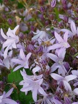 Колокольчик Lisduggan Variety (Лисдугган Вэраети). Сорт с сиреневыми цветками. Смотрится очень свежо и привлекательно. Этот колокольчик в высоту достигает всего 15 см. Образует широкие куртины, поскольку побеги распространяются в стороны и имеют длину до 80 см. Листья маленькие, сердцевидные, зубчатые.