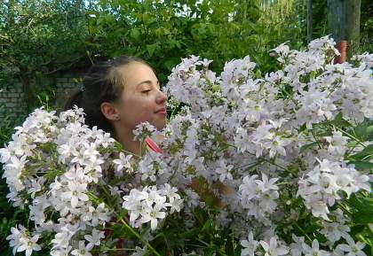 Колокольчик молочноцветковый Loddon Anna (Лоддон Анна). Многолетнее растение с прямыми облиственными ветвистыми стеблями до 170 см высотой. Цветки колокольчатые до 5 см в диаметре, светло-сиреневые, собраны в крупное кистевидное соцветие. Цветение с июня до конца августа. Цветки обладают тонким ароматом и привлекают пчел и шмелей! Местоположение должно быть солнечным.