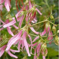 Колокольчик Pink Octopus (Пинк Октопус) в высоту достигает 40 см, его глянцевые листья имеют оригинальные зубчатые края, а у цветков причудливая форма — узкие линейные розовые лепестки с многочисленными малиновыми пятнышками и крапинками. Радоваться красоте этих цветков можно с июня по август.