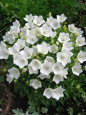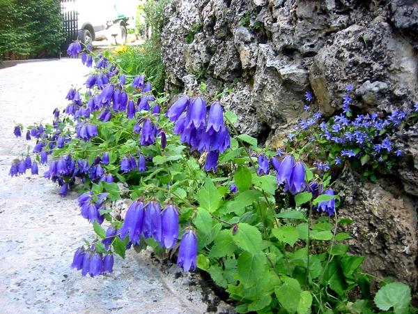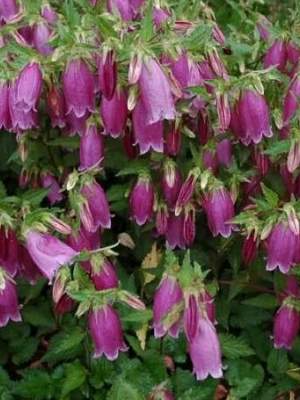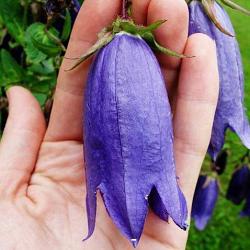 Колокольчик Sarastro (Сарастро). Крупный прямостоячий куст высотой до 60 см. Цветки огромные, многочисленные, длиной до 8 см, поникающие, тёмно-синие. Листья тёмно-зелёные.