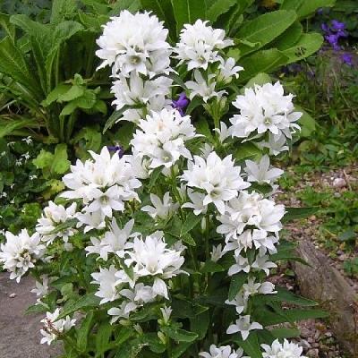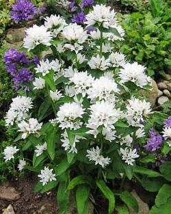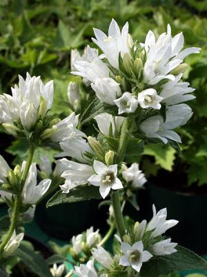 Колокольчик скученный Alba (Альба). Стебли прямые, до 60 см, опушенные, как и листья. Листья расположены в очередном порядке. Цветки белые до 2 см в диаметре, в верхушечных и пазушных головчатых соцветиях до 20 шт. Цветет в июне-июле 30-35 дней.