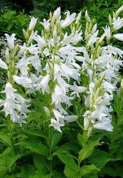 Колокольчик широколистный Snow Dune (Сноу Дюн). Высокий колокольчик для полутенистых мест. Значительно осветляет затененные пространства. Очень неприхотлив, способен к самосеву. Цветки у сорта Сноу Дюн очень крупные (6-8 см), образуют на цветоносе достаточно плотную кисти.