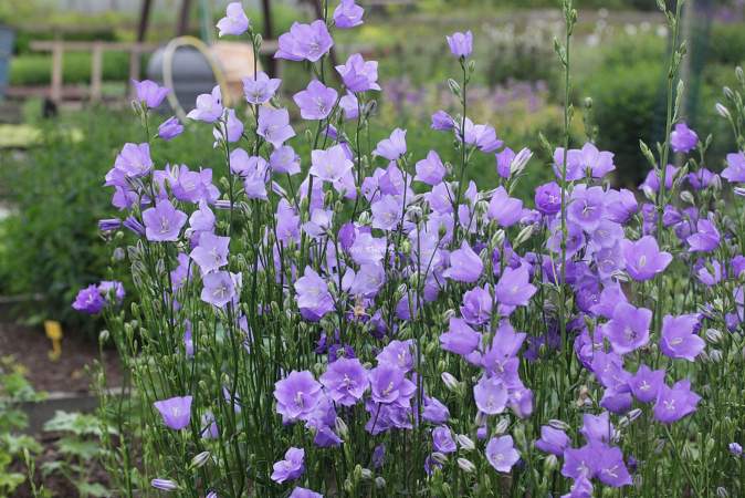 Колокольчик Takion Blue (Такион Блу). Великолепное растение для миксбордеров, групповых посадок, для срезки. Цветки ширококолокольчатые, сиреневато-голубые, крупные, длиной 4-5 см, собраны в метельчатые соцветия по несколько штук.