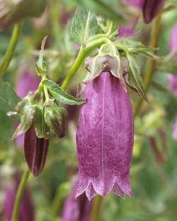 Колокольчик Wine'n Rubies (Вайн ин Рубиз). Очень распространено в странах с умеренным климатом. Цветет он целое лето и даже ранней осенью. Колокольчик точечный получил свое название от малиновых крапин на белом лепестке, заметных изнутри цветка. Особенность формы цветка в том, что он походит на дутую бочечку и сужается к лопастям-лепесткам.