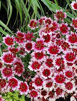 Кореопсис Fruit Punch (Фрут Панч). Это невысокое многолетние растение не только обладает декоративным внешним видом, но и неприхотливо в уходе. Достигает высоты 35 сантиметров, достаточно густые побеги образуют небольшой кустарник раскидистой формы. Продолговатые листья окрашены в яркий зеленый цвет. Цветет с июня по июль.