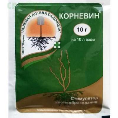 Корневин (10 г). Смачивающийся порошок 5 г/кг индолилмасляной кислоты. Используется для быстрого укоренения саженцев плодовых, ягодных, декоративных культур. Ускорения корнеобразования при черенковании. Улучшения приживаемости рассады. Пробуждения луковиц цветов при выгонке. Аналог растительного гормона гетероауксина, стимулирует образование и рост корней, посаженные растения хорошо приживаются.