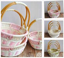 Плетеная корзина из ротанга. Возможет выбор цвета — белый, розовый, салатовый. Размер дна: 13,5 см., верха: 19 см., высота: без ручки 10 см.