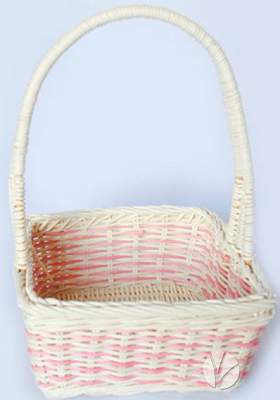 Квадратная плетеная корзина из ротанга с розовым декором. Высота без ручки 4,5 см