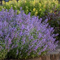 Котовник Фассена Cats Meow (Кэтс Мяу). Компактный сорт, высота 25 см. Листья опушенные, серовато-зеленые. Цветет с мая, продолжительно. Цветки синевато-фиолетовые, соцветия до 10 см длиной. Зимостойкий, ароматный, привлекает полезных насекомых.
