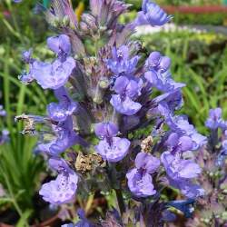 Котовник Walkers Low (Уолкерc Лоу). Кустик изящный, густой и пушистый, шириной 70 см. Цветки бледно-фиолетовые, собраны в плотные колосовидные соцветия из относительно редких трубчатых цветочков. Листья большие, серо-зелёные, очень ароматные. Котовник — хороший медонос. Часто цветёт повторно в сентябре. Плоды — семянки, созревающие в сентябре.
