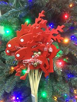 Красный олень на штекере. Милый и дружелюбный, с бантиком и колокольчиком — он добавит улыбку к вашему подарку для друзей. Также олень станет прекрасным дополнением к новогоднему декору — для украшения венков и гирлянд, композиций из лапника.