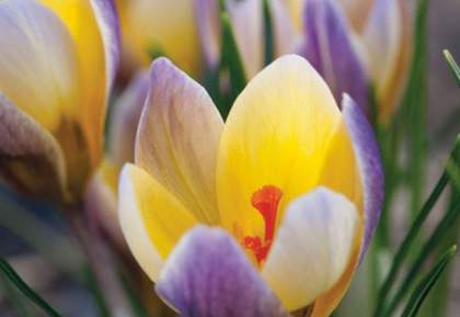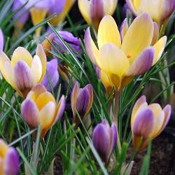 Крокус Advance (Эдванс). Очень красивый двухцветный крокус — желтый с сиреневым. Высота растения 10 см.