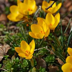 Крокусы ботанические. Раннецветущие растения средней величины. Отличаются не только удивительной гаммой окрасок и обильным цветением, но и душистыми цветками. Период цветения в зависимости от климатических условий начинается в феврале-марте. Хорошо развиваются на освещенных, прогреваемых солнцем местах. В тени цветки не раскрываются полностью. Предпочитают рыхлые водопроницаемые питательные почвы.