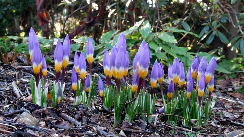 Крокусы ботанические. Раннецветущие растения средней величины. Отличаются не только удивительной гаммой окрасок и обильным цветением, но и душистыми цветками. Период цветения в зависимости от климатических условий начинается в феврале-марте. Хорошо развиваются на освещенных, прогреваемых солнцем местах. В тени цветки не раскрываются полностью. Предпочитают рыхлые водопроницаемые питательные почвы.