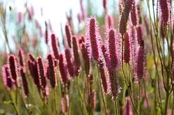Кровохлёбка канадская Blackthorn (Блэкторн). Очень эффектный сорт, с продолговатыми, розово-красными удлиненными стоячими свечевидными соцветиями. Второе название сорта — Purple Candle — Пурпурные свечи.