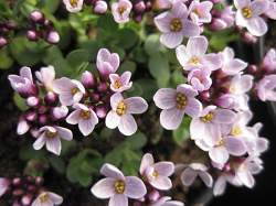 Очень низенькое, высотой не более 5 см, растение с маленькими сизыми круглыми листочками, образующими коврик. Цветки яркие розовато лиловые в начале мая. Цветение дружное и обильное. Цветёт очень обильно в начале мая. Почва требуется с хорошим дренажом. Расположение на солнце или в лёгкой полутени.