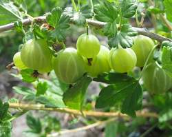 Крыжовник Берилл. Куст средней высоты, среднераскидистый, густой. Побеги изогнутые, со свешивающейся верхушкой, фиолетовые, с шипами в нижней части.