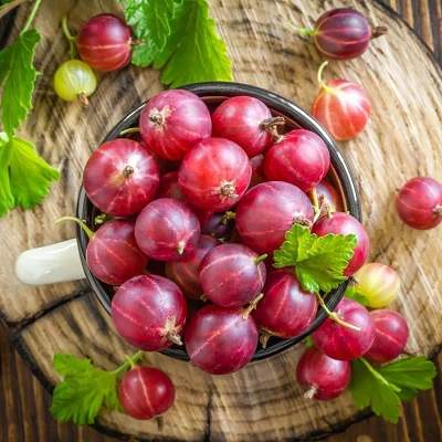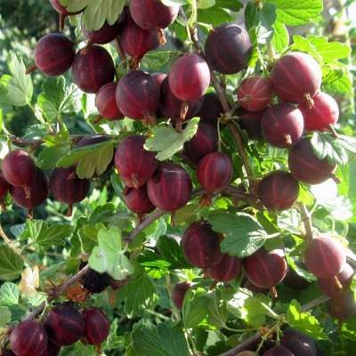 Крыжовник Русский Красный. Растение высотой до 150-180 см. Ошипованность небольшая - одиночными колючками. В молодом возрасте кустарник достаточно раскидистый, а затем становится компактным. Средняя масса ягоды составляет 3-6 г. Окрас у ягод темно-красный с осветленными жилками на кожице.
