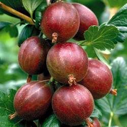 Крыжовник Спайнфри. Новый бесшипый сорт красного крыжовника. Куст широкий, раскидистый, побеги дугообразно изогнутые. Форма ягоды круглая эллиптическая, темно-красного цвета с зелеными жилками, средних и крупных размеров — 4,5 г, твердые, собраны по 1-2 кист.