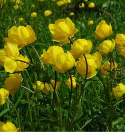 Купальница европейская. Одно из самых любимых садовых растений. Не требует ухода. Легко сеется. Везде уместно.