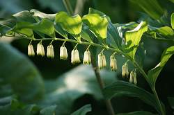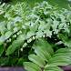 Купена серповидная. Эффектное и неприхотливое растение для тенистых уголков сада. Побеги изогнутые (60 см), листья крупные, блестящие, с красивыми заметными жилками. Цветет в мае белыми цветками.