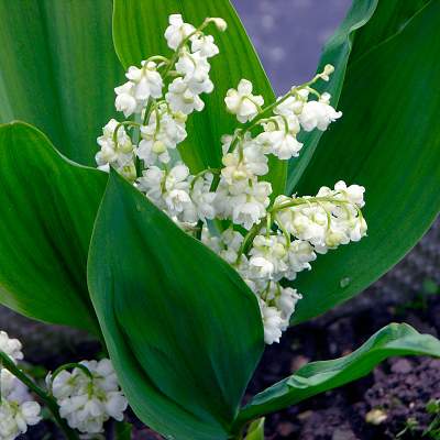 Ландыш махровый Prolyficans (Пролификанс). Многолетнее травянистое растение высотой до 15-20 см. Корневище длинное, ползучее. Листья крупные, в группах по 2-3 шт. Цветки махровые душистые белые, поникшие, колокольчатые. Запах сильный, приятный. Соцветие — длинная односторонняя кисть.