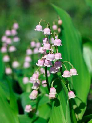 Ландыш Rosea (Розеа). Многолетнее травянистое растение высотой до 25 см. Корневище длинное, ползучее. Листья крупные, в группах по 2-3 шт. Цветки простые душистые светло-розовые, поникшие, колокольчатые. Запах сильный, приятный. Соцветие — длинная односторонняя кисть.