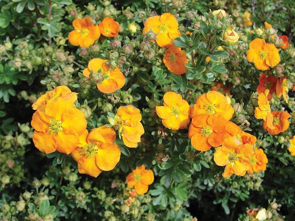 Лапчатка кустарниковая Аннет — это неприхотливый кустарник высотой до 0,8 м и шириной до 1 м. Форма округлая, широкая, побеги стелющиеся. Листья темно-зеленые. Цветки светло-оранжевые, затем желтеющие в центре, по краю оранжевые. Быстрорастущая. Время цветения июнь-октябрь.
