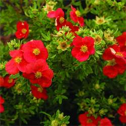 Лапчатка кустарниковая Marian Red Robin (Мэриан Рэд Робин). Красивоцветущий карликовый сорт лапчатки, вырастающий до 0,5 м в высоту, с плотной компактной округлой кроной до 0,8 метра шириной.