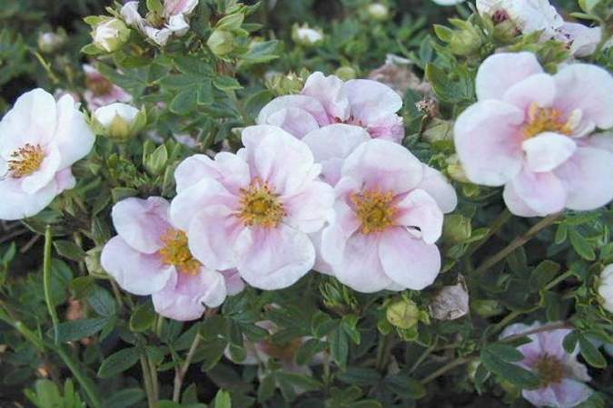 Лапчатка Pretty Polly (Притти Полли). Низкий кустарник с раскидистой кроной. Высота 0,4-0,6 м. Побеги стелющиеся, с игольчатыми светло-зелеными листочками. Цветки светло-розовые. Используется в качестве бордюра, низкой живой изгороди, в композициях с деревьями и кустарниками, альпинариях, каменистых террасах.