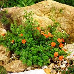 Небольшой неприхотливый кустарник. Цветет обильно, цветки яркие оранжево-красные с жёлтым центром диаметром 2,5 см. Снаружи лепестки имеют светло-оранжевый оттенок. Цветение продолжается с июня-июля до октября. Листья светло-зелёные.