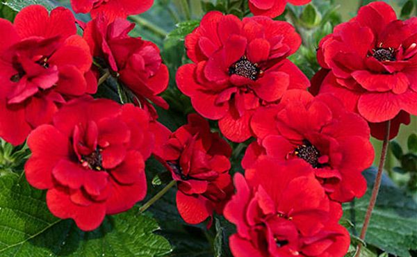Лапчатка Scarlet Dreams (Скарлет Дримс). Красивая новинка. Растение высотой до 40 см. Цветки крупные (4 см в диаметре), ярко-красные, махровые, собраны в соцветия. Листья темно-зеленые, зубчатые.