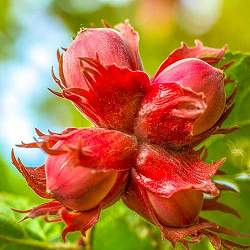 Лещина (фундук) Московский Рубин. Краснолистный зимостойкий сорт. Плодоносит почти ежегодно. В соплодии бывает до 15 орехов. Урожайность 3 кг с куста. Куст сильнорослый, высотой 450 см. Орехи крупные (2,8 х 1,8 см), ярко-малиновые, созревают поздно, в начале октября. Скорлупа тонкая. Содержание жира 63%. Ядро вкусное. Сорт самоплодный, хороший опылитель для других сортов и гибридов.