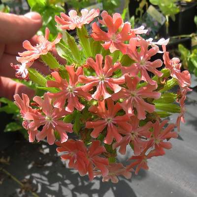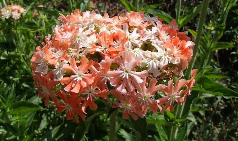 Лихнис халцедонский Carnea (Карнеа). Хорошо известное растение "зорька" теперь в новой окраске — лососево-розовой. Цветки крупные, до 3 см в диаметре, собраны в большие шаровидные соцветия. Высота в цвету около 60 см. Время цветения июль-август. Зимостойкость полная.