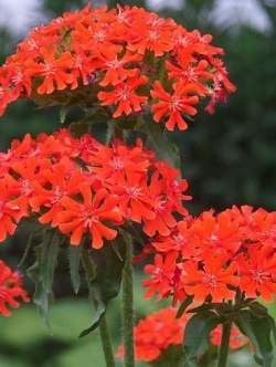 Лихнис халцедонский (L. chalcedonica) или Зорька обыкновенная. Стройное высокое растение, стебель которого венчает соцветие из ярко-оранжево-красных цветков-звездочек, зацветающих в середине июня. Если вовремя удалять отцветшие соцветия, то любоваться красивыми цветками можно до полутора месяцев. Осенью возможно повторное, но уже не столь пышное и яркое цветение.