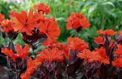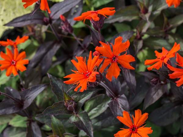 Лихнис аркрайта Vesuvius (Везувиус). Неприхотливый, но очень эффектный многолетник. Куст аккуратный, высотой до 40 см. Цветки алые, побеги и листья зеленовато-пурпурные. Цветки довольно крупные, до 5 см. Любит щелочную почву.