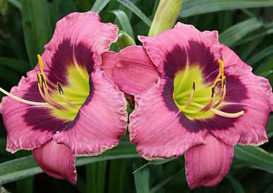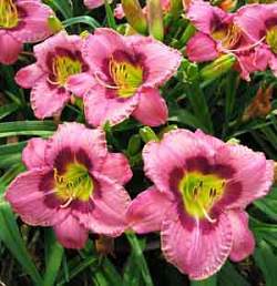 Лилейник Always Afternoon (Олвейс Афтернун). Цветок яркого лилово-розового цвета, с желто-зеленым горлом и пурпурно-бордовым глазом. Легкая гофрировка. Высшая серебряная медаль 1997 года!