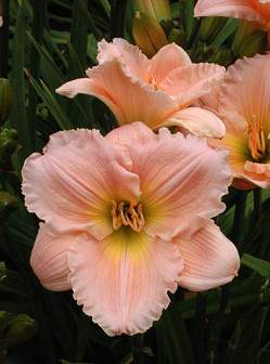 Лилейник Barbara Mitchell (Барбара Митчелл). Нежно-розовые лепестки, светлеющие к гофрированному краю, с более темными прожилками. Светло-зеленое горло. Тип вегетации — Полувечнозеленый. Обильное продолжительное цветение. Эффектный сорт!