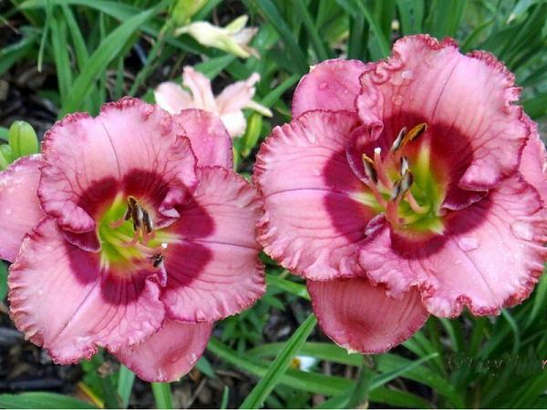 Лилейник Cherry Valentine (Черри Валентин). Высота растения 60 см, розовый с красным глазком и зеленым горлом, повторное цветение. Цветение июль-август.