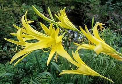 Лилейник цитрина. Необычный, но весьма неприхотливый вид. Цветки крупные, 14 см, лимонно-желтые, лепестки заостренные. Цветение чрезвычайно обильное. Цветки раскрываются ближе к вечеру и держатся открытыми до полудня следующего дня. Ароматные, пахнут лимоном. Листья темно-зелёные, длиннее и уже, чем у гибридных лилейников, свисают каскадом.