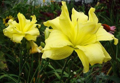 Лилейник Double River Wye (Дабл Ривэ Вай). Прекрасный крупный цветок с широкими лепестками. Приятный цвет -лимонный. Махровый, повторное цветение.