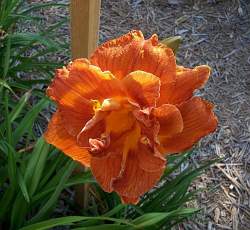 Лилейник Doublelicious (Даблишес). Сорт с необычной окраской, розовато-оранжево-коричневой. Цветки махровые, 12 см в диаметре, с красивой волнистой каймой. Высота 60 см. Цветет в июле.