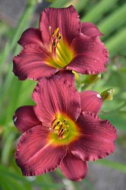 Лилейник Eenie Fanfare (Эние Фанфэйр). Миниатюрный обильный сорт. Цветки малиново-красные с желтовато-зеленым горлом, края лепестков с узкой белой каймой!