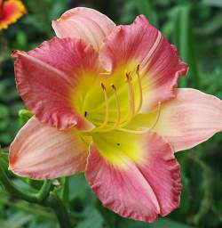Лилейник Eleonore (Элеонора). Двухцветный сорт: внутренние лепестки палево-лавандовые, внешние кремово-розовые, почти белые, жёлто-зеленое горло. Открыт днём более 16 часов. К концу цветения оттенки бледнеют. Продолжительное, до 6 недель цветение!