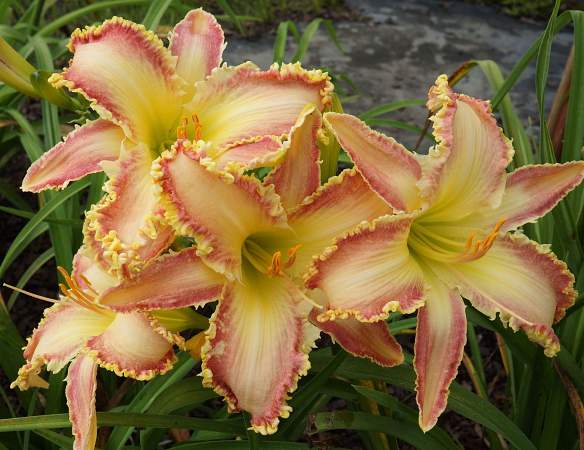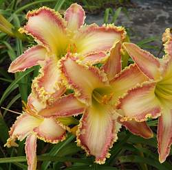 Лилейник Geneva Summer Wind (Женева Саммер Винд). EV. Тетраплоид. Огромный (цветок до 21 см), кремово-розовый, горло зеленое. Края пузырчатые, кремовые. Высота 66 см.