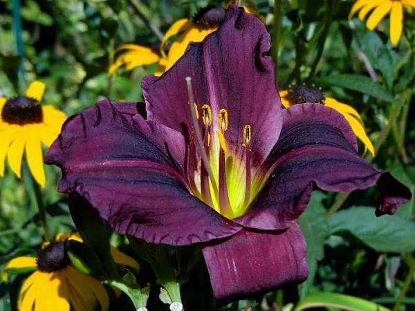 Лилейник Grape Velvet (Грейп Велвет) — сорт с виноградно-пурпурными крупными (12 см) цветками. Горло желтое. Лепестки волнистые. Длительно цветет. В цветнике смотрится ярко.