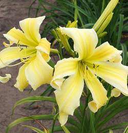 Лилейник Heavenly Flight of Angels (Хевенли Флайт оф Энджелс). Очень красивый, огромный (более 20 см), кремово-желтый цветок с зеленоватым горлом. Относится к группе спайдеров! Лепестки закручиваются как локоны.